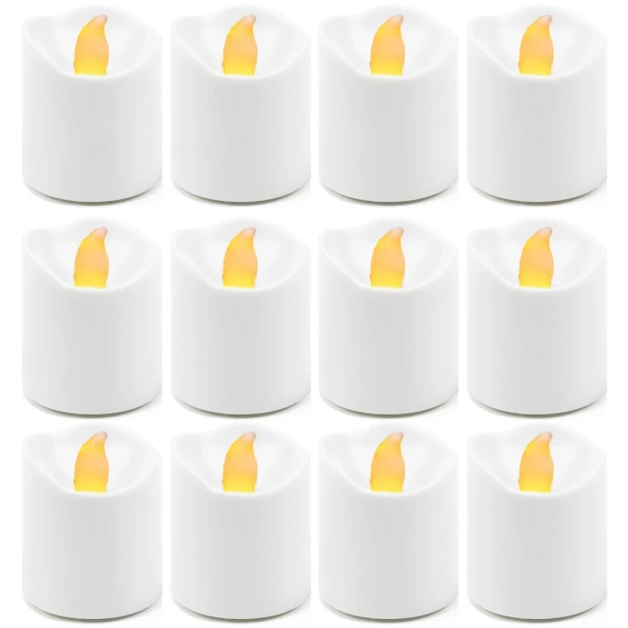CYS Flameless LED Pillar Candles, White Plastic casing, battery operated – Size: 1.6″ tall, 1.5″ wide – Flickering soft amber LED light realistically simulates burning candle flames. The flameless pillar have no drips, no mess, and is to use safe around children or pets. Each candle has an On/Off switch and uses one CR2032 Battery (included); easily replaceable by a push button. Batteries last up to 100 hours. These candles make great and affordable party favors and gifts, especially for kids!