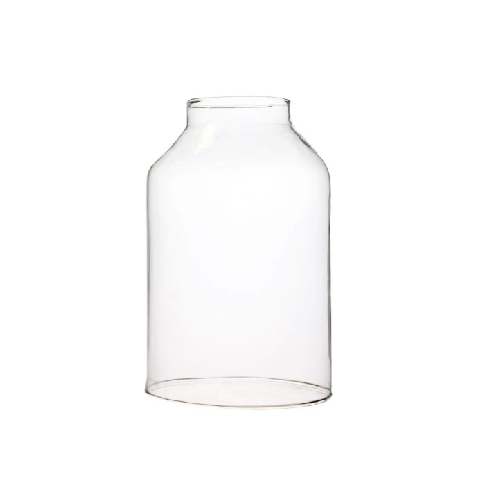 Add a touch of elegance with our almost milk shaped open ended glass hurricane to your candle display. This features a simplisctic form to place over candles and easy to remove, while still providing protection for open flames. The contemporary design of the hurricane candle holder gives an impressive display in your home and special events. It’s an astonishing bottomless shield to cover votive and pillar candles for open flame candles. No more dripping wax onto the side of the glass.