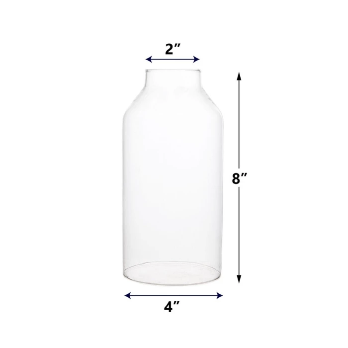 Add a touch of elegance with our almost milk shaped open ended glass hurricane to your candle display. This features a simplisctic form to place over candles and easy to remove, while still providing protection for open flames. The contemporary design of the hurricane candle holder gives an impressive display in your home and special events. It’s an astonishing bottomless shield to cover votive and pillar candles for open flame candles. No more dripping wax onto the side of the glass.