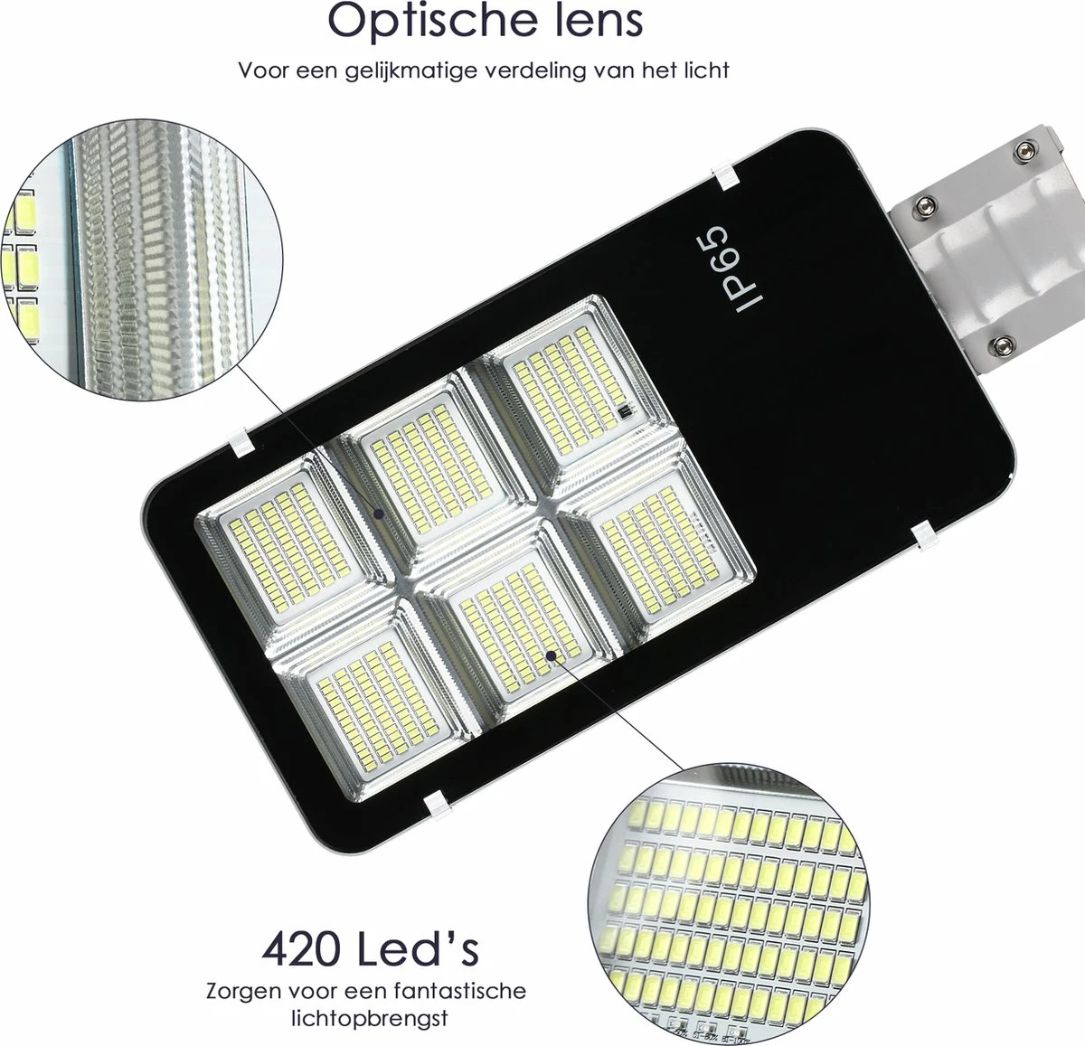 Avec cette centrale électrique, vous illuminez n’importe quel environnement extérieur ! Les 420 points lumineux LED intégrés, chacun avec 4000 lumens, fournissent ensemble un faisceau lumineux brillant : cela signifie que chaque allée de jardin, la porte d’entrée et d’autres endroits sont bien éclairés. L’applique est équipée d’un détecteur de mouvement, fonctionne à l’énergie solaire et peut être commandée via une télécommande. De plus, vous n’avez pas à vous soucier des conditions météorologiques : notre lampe d’extérieur est étanche à l’eau et à la poussière IP65.