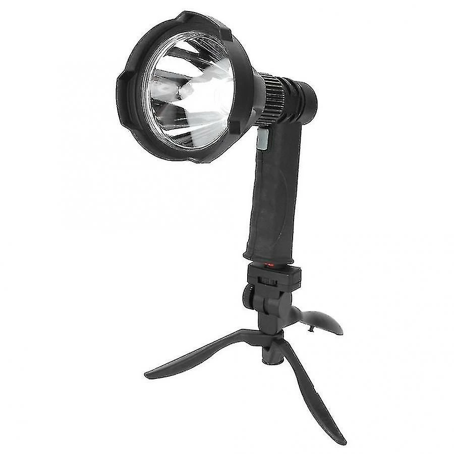 Portable Handheld LED Searchlight With Foldable Tripod Emergency Long Range Lighting Flashlight USB Charging Camping Equipment|Outdoor ToolsHandheld LED XML-T6 Work Light Lamp with Foldable Tripod Emergency Flashlight USB ChargingFeature:1. LED light bulb, good brightness, energy saving and eco-friendly, long use time.2. With folding tripod, and the rotating bracket can be operated in different irradiation directions.3. Made of quality material, sturdy and durable, lightweight and portable.4. With USB interface, not only as a lighting device, but also as a mobile power supply.5. Suitable for hiking, camping, climbing, fishing, cave exploration, night riding, lighting, daily emergency field survival.6. Build-in 4000mAh rechargeable battery, long work time.Specification:Item type: LED camping lightMaterial: PVCMaximum range: about 200-500MBulb: 1 x XML-T6Power: 10WPower supply: USB chargingBattery: 4000mAh battery(build-in)Weight: Approx. 586gPackage List:1 x Work Light1 x USB Cable1 x Tripod
