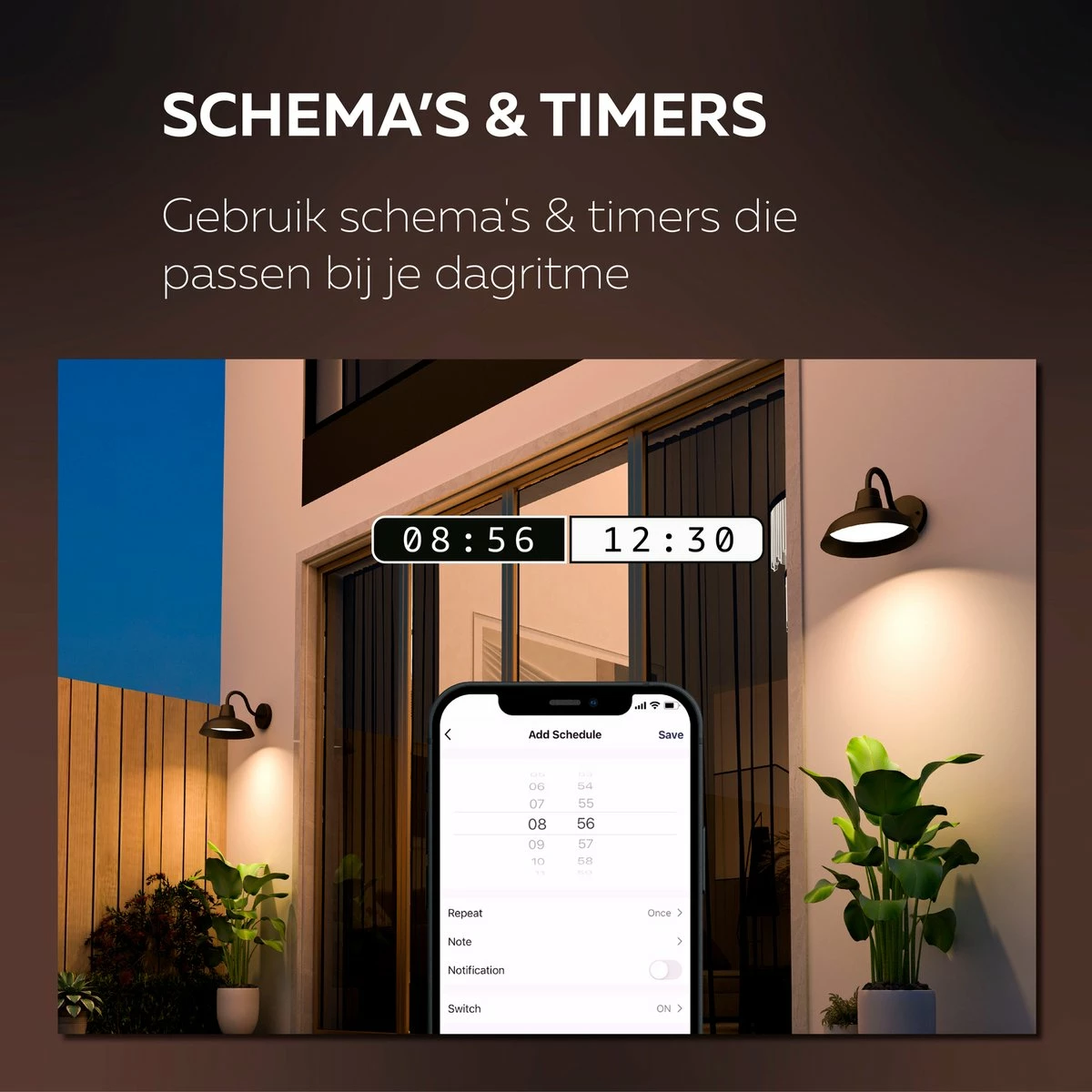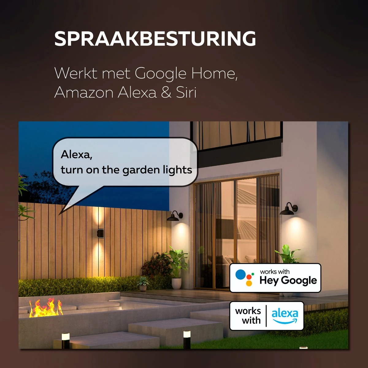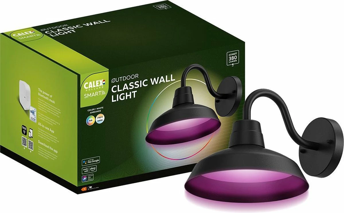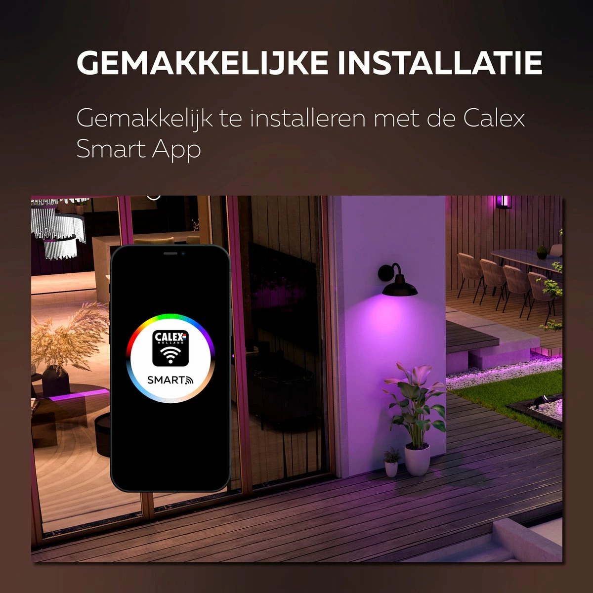 Avec à ces Smart éclairages muraux d’extérieur, votre jardin ou votre balcon deviendra un lieu d’ambiance. Grâce à l’application gratuite Calex App, cette lanterne classique peut être contrôlée à distance, même lorsque vous n’êtes pas chez vous. Accentuez et illuminez certaines parties de votre jardin grâce à cette lampe murale et profitez d’une lumière blanche variant du froid au chaud avec 16 millions d’options de couleurs supplémentaires. Bien entendu, cette lampe d’extérieur convient aussi parfaitement à votre balcon ou à votre terrasse ! Remarque : pour cette lampe de jardin, vous avez besoin d’un Calex Bluetooth Link, qui assurera une connexion optimale de votre collection extérieure