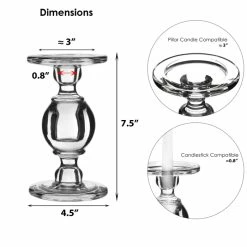 Baluster Glass Dual Use Pillar Taper Candle Holder, H-7.5″ W-4.5″ (Wholesale 6 PCS/Case)