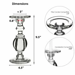 Baluster Glass Dual Use Pillar Taper Candle Holder, H-9.5″ W-4.5″ (Wholesale 6 PCS/Case)