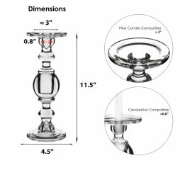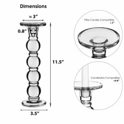 Baluster Glass Dual Use Pillar Taper Candle Holder, H-11.5″ W-4.5″ (Wholesale 6 PCS/Case)