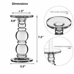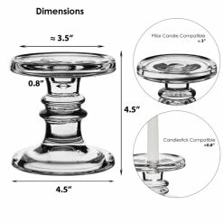 Classic Glass Dual Use Pillar Taper Candle Holder, H-4.5″ W-4.5″ (Wholesale 12 PCS/Case)