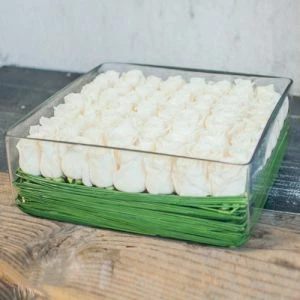 This square vase has a 10″ x 10″ opening and a height of 3.25″. Simple in design yet versatile in application, these large square glass tray vases are equally adaptive for fresh-cut or dry floral arrangements. They are intended for displaying a neatly packed array of short stemmed flowers, which can be lined up as several rows of buds for a modern display. However, they are also suitable as candle trays thanks to strong utility glass and a thickened base that can protect surfaces from dripping wax and heat damage. They work well for elegant weddings, private parties, or simple decorating around the house. Purchase these vases for your table and you can also decorate it by filling it with sand, pebbles, marbles, pins or any types of dry filler before adding flowers, leaves, ferns, pine, or fruits like lime, oranges, and grapes cut in different shapes. These glass vases also make lovely gifts, souvenirs, or modern home decor pieces.
