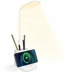 Giveuphesit Lampe De Bureau Led Avec Chargeur Sans Fil, Lampes De Bureau Pour Bureau à Domicile Avec Porte-stylo, Lampe De Table Avec 3 Modes D’éclairage, Col De Cygne 360flexible, T