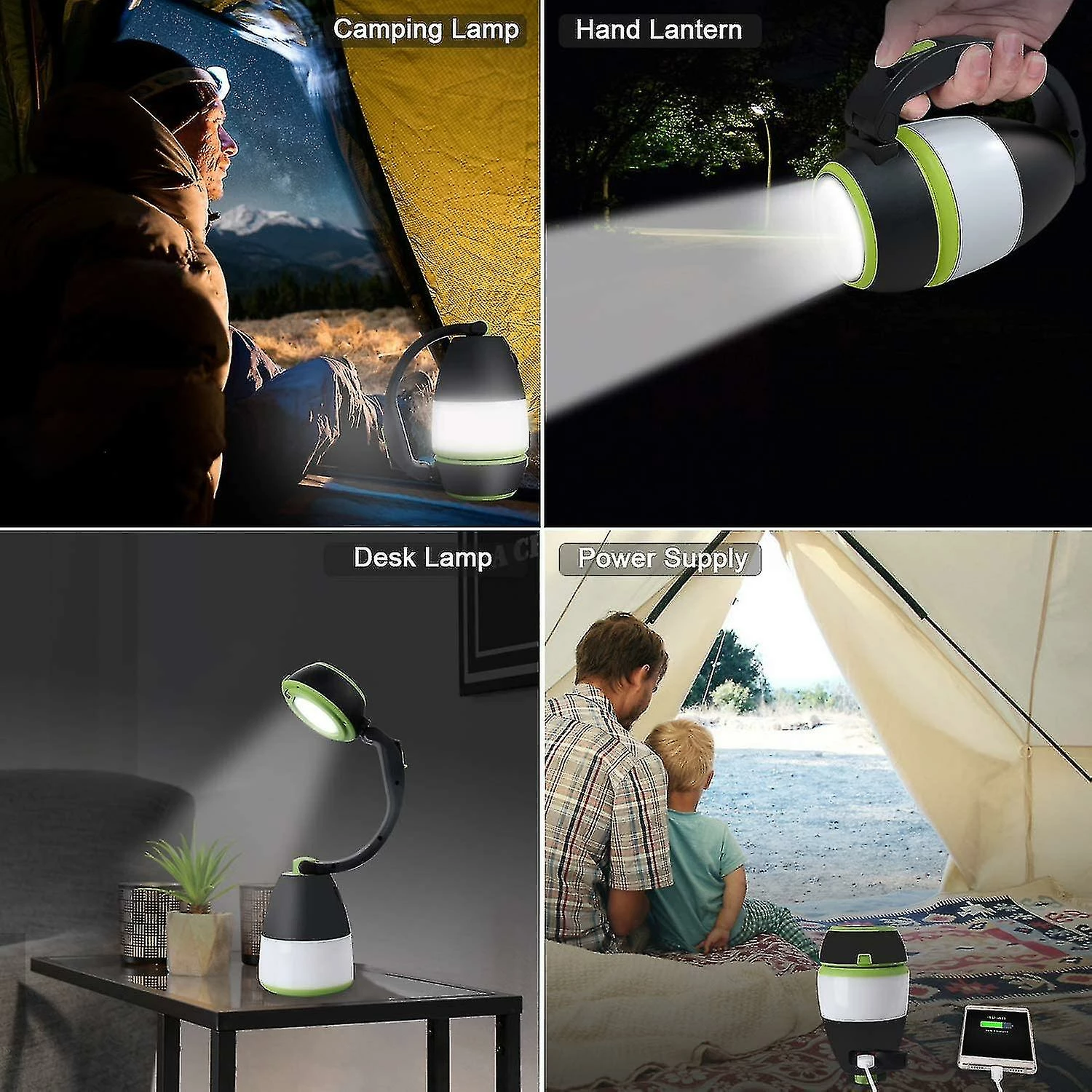 [Lampe 3 en 1, nombreuses utilisations] Peut être utilisé comme lampe de camping, lampe de table, lampe de poche. Juste en tournant la base pour changer la forme, Très facile à utiliser Répondez à vos multiples besoins. [2000mAh Batterie rechargeable intégrée] Lampe de poche rechargeable par câble USB (câble de 0,5 m inclus, ont une batterie 18650 de grande capacité de 2000mAh de haute qualité, un éclairage continu pendant 7 à 12 heures, un éclairage toute la nuit et avec fonction de sortie USB, pour charger des téléphones mobiles, des ordinateurs et d’autres recharges d’urgence.[ Matériau imperméable à l’eau et angle réglable] La coque et la poignée sont en matériau ABS de haute qualité, confortable au toucher. L’abat-jour est fait de matériau PC avec une bonne transmission de la lumière, l’angle lumineux de l’abat-jour au milieu est de 360 degrés. En tant que lampe de bureau, la lampe supérieure peut être pivotée et ajustée à 180 degrés[3 Luminosité] Grâce aux boutons de la poignée, un bouton pour régler la luminosité. Lorsqu’il est utilisé comme lampe de camping, la puissance est de 10w et il existe deux options de luminosité. Utilisé comme lampe de poche, la puissance est de 3w et il n’y a qu’une seule luminosité. [Large gamme d’applications] Large gamme d’applications, adaptées aux activités de plein air, au camping, à la chasse, à la pêche, à l’éclairage des tentes. Ou comme lampe de bureau intérieure, lampe de secours lampe de travail pour la réparation automobileLED Lampe de camping / Lampe de table / Lampe torcheSpécification: Matériel du produit: ABSTemps de chargement et temps d’utilisation: 3,5 heures pour la charge, 7-12 heures pour l’utilisationPuissance: lampe de camping + lampe de table: 10W, lampe de poche: 3W. Paramètres optiques: 200 lumens, indice de rendu des couleurs 80Évaluation étanche: IPX4Mode d’alimentation: charge USBCapacité de la batterie: 2000mAhUne combinaison de lanterne de camping, lampe de poche et lampe de table1. Facile à utiliser: une touche pour contrôler plusieurs interrupteurs d’éclairage, changer de forme en tournant, conversion multifonction complète, 2. Modes d’éclairage: Lanterne LED avec réglages réglables UP / DOWN. Haute – 200 lumens / 7 heuresVous – 100 lumens / 12 heuresFlampe à tête – idéale pour une utilisation en cas d’urgence.180 lumens / 7 heures Lampe de tableConfigurations polyvalentes pour une utilisation intérieure et extérieure. La lumière LED se déplie pour être utilisée comme lampe de bureau réglable ou comme projecteur. Haute – 200 lumens / 7 heuresVous – 100 lumens / 12 heures
