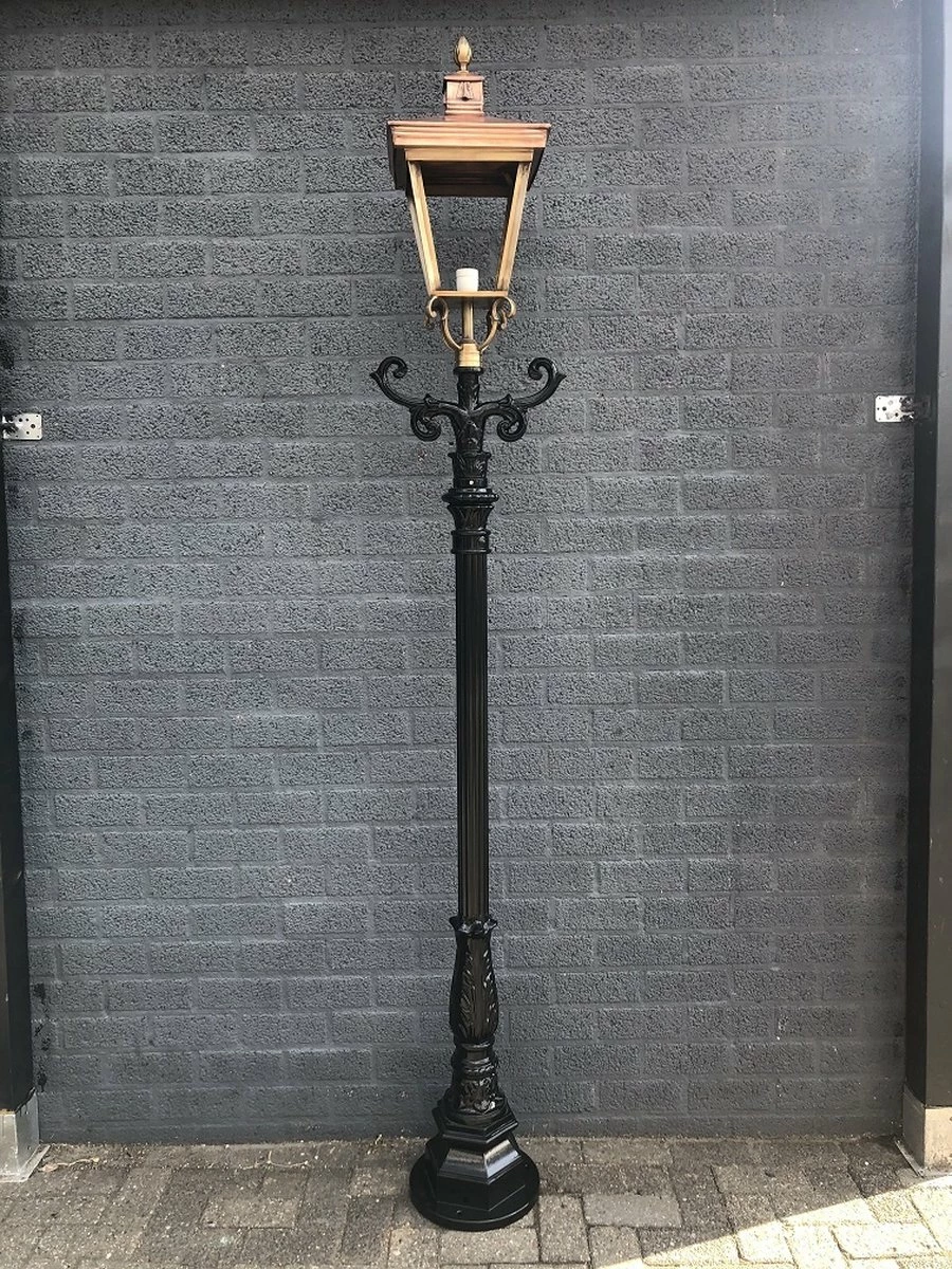Une lampe nostalgie de bon goût pour votre jardin, lourde avec une grosse tête de lampe, tout cuivre-laiton, très belle !!.