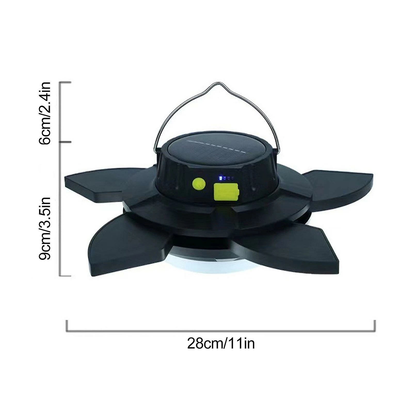 2. Upgraded Version: 1) 96 LEDs, much brighter than ordinary solar lanterns. 2) Solar powered & USB charging optional. 3) Can charge the phone, laptop, etc.