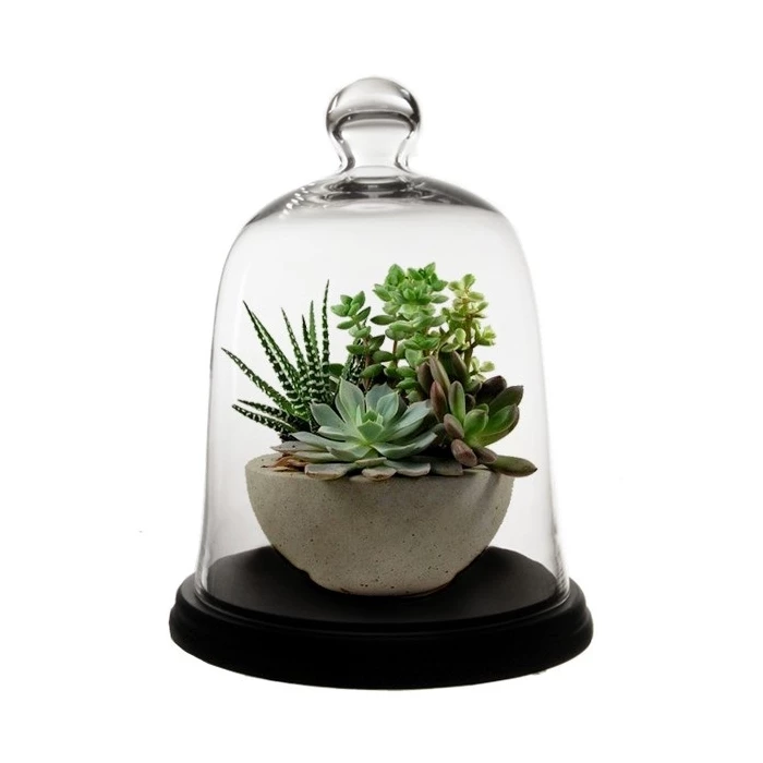Glass cloche domes were originally created to protect seedlings or delicate flowers from adverse elements. They have since been widely used as plant terrarium containers or as dessert display covers. You may incorporate this cloche with unique artistic displays of any kind. This clear glass cloche is also the perfect item to place with different types of cake stands or trays, event decorating are favoring this glass cloche covers as part of table setting decor.