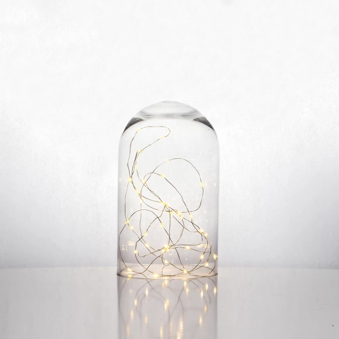 Originally created to protect seedlings or delicate flowers from adverse elements, these glass domes can also be plant terrarium containers or dessert display covers! This clear glass cloche is the perfect choice to pair with different types of cake stands or trays. More and more wedding centerpieces are seen using cloche covers as part of the table setting decor. It is a practical way to keep dust from falling on candles and a gorgeous decorative object on it own.Â