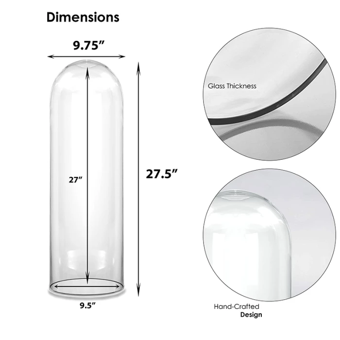 Glass Cloche Display Dome, H-27.5″ D-9.75″ (Wholesale 2 PCS/Case)