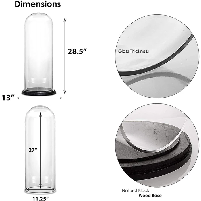 Originally created to protect seedlings or delicate flowers from adverse elements, these glass domes can also be plant terrarium containers or dessert display covers! This clear glass cloche is the perfect choice to pair with different types of cake stands or trays. More and more wedding centerpieces are seen using cloche covers as part of the table setting decor. It is a practical way to keep dust from falling on candles and a gorgeous decorative object on it own.