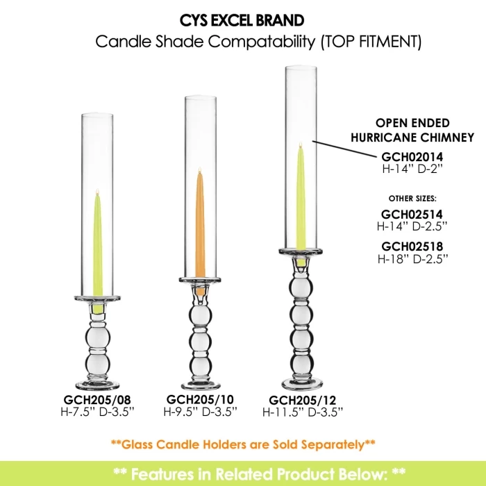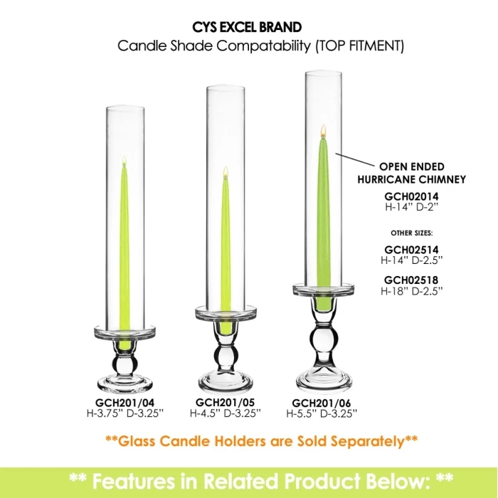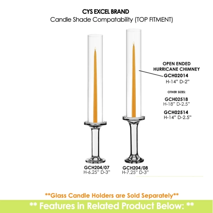 Our elegant open-ended glass hurricane shades are easy to place over candles and easy to remove, while still providing protection for open flames. The contemporary design of the hurricane candle holder gives an impressive display in your home and special events. It’s an astonishing bottomless cylindical shield to cover votive and short pillar candles for open flame candles. No more dripping wax onto the side of the glass.