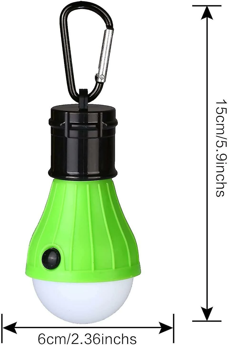 Camping LanternThe lamp body is made of ABS which is environmentally friendly, strong anti-aging; Lamp cover surface with the frosting treatment, good gloss good quality, not easy to scratch. Internal 3 LEDsBright and stable light to rely on 3*8MM LEDs provide, its high level 60 Lumens offers Brilliant high level of brightness, meanwhile, LED save boredom for long time use. 3 Brightness ModesPress the button 1 time for full brightness mode, 2 times for half brightness mode, 3 times for SOS (flashing light) mode, 4 times for shut down. You can choose the 4 modes according to your need. theSOS mode can be used in an emergency, allowing you to travel and go camping without worry. Unquie designDesigned as light bulb shape, not only lightweight, but also practical, easy to carry, won’t occupy too much space in your bag; With the hook, you can hang it anywhere, perfect for outdoor and indoor activities. Easy to carryHandheld or hanging, small size, light weight, it can be carried in a pocket and taken to anywhere, hanging in a tent or outdoor branches. Specification: Material: ABS plastic LED Quantity: 3 pieces LED Color: cold white light Power supply: 3 AAA batteries (not included) Lighting mode: Full light / half light / flashing light Size: about 15 x 6cm/5.9 x 2.36 inches Weight: 20g/pcs Three lighting modes You can select your favorite mode according to different types of activities by pressing the high quality black rubber button. Durability This portable multi-function light is constructed with high quality, safe and reliable green plastic ABS materials to help provide maximum durability. Water resistant Each of our lights are handcrafted with water-resistant plastic – making them extremely durable wherever you go. The lamp is designed for indoors and outdoors. But don’t put it in water. Warning 1.The tent light is powered by 3 AAA batteries (AAA battery not included). 2. Please replace the battery in time when the light has dimmed to ensure more durable use. 3. Use a clean cotton cloth to wipe the surface of the lamp after a period of use. 4. When not in use, please do not place the lamp in a hot and humid environment for a long time. What you will get: 4 x LED Camping Lantern (without batteries)