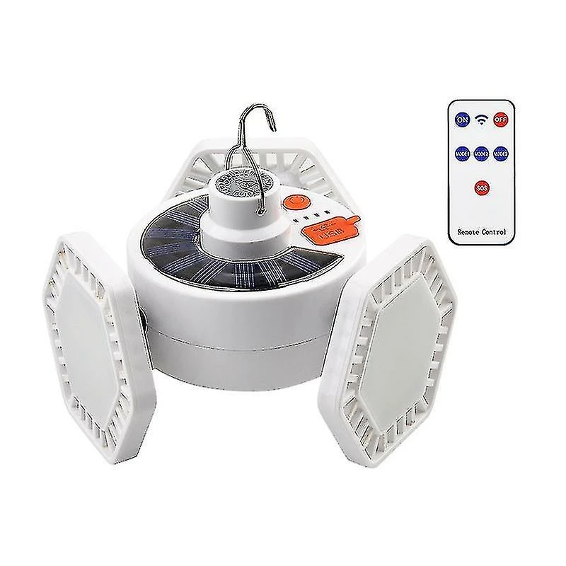Specification:Material:ABS;Charging method:USB+solar;Battery:2×18650(Not included) Built in lithium battery;Case color:White;Light color:White;Mode:5 kinds (strong-medium-weak-flash-SOS);Size:170x147x101mm;Waterproof:IPX4;Weight:355g;Features:High quality waterproof material.Wide range of illumination and long life span.5 modes freely adjustable to meet a variety of lighting needs.USB input and output design, can be used as a rechargeable battery.USB and solar charging, fast and convenient.Hook design, easy to carry and use.Package included:1 x Solar Camping Light;1 x Remote Control;1 x USB Cable;