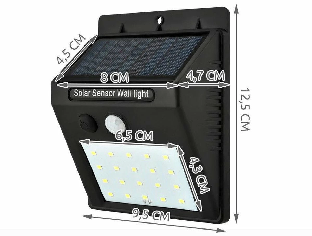 Dès que le capteur de mouvement détecte un mouvement, la lampe s’allume et lorsqu’il n’y a plus de mouvement, elle s’éteint après un certain temps pour économiser de l’énergie. Si aucune lumière n’est nécessaire pendant la journée, la lampe s’éteint complètement et se charge par la lumière du soleil.