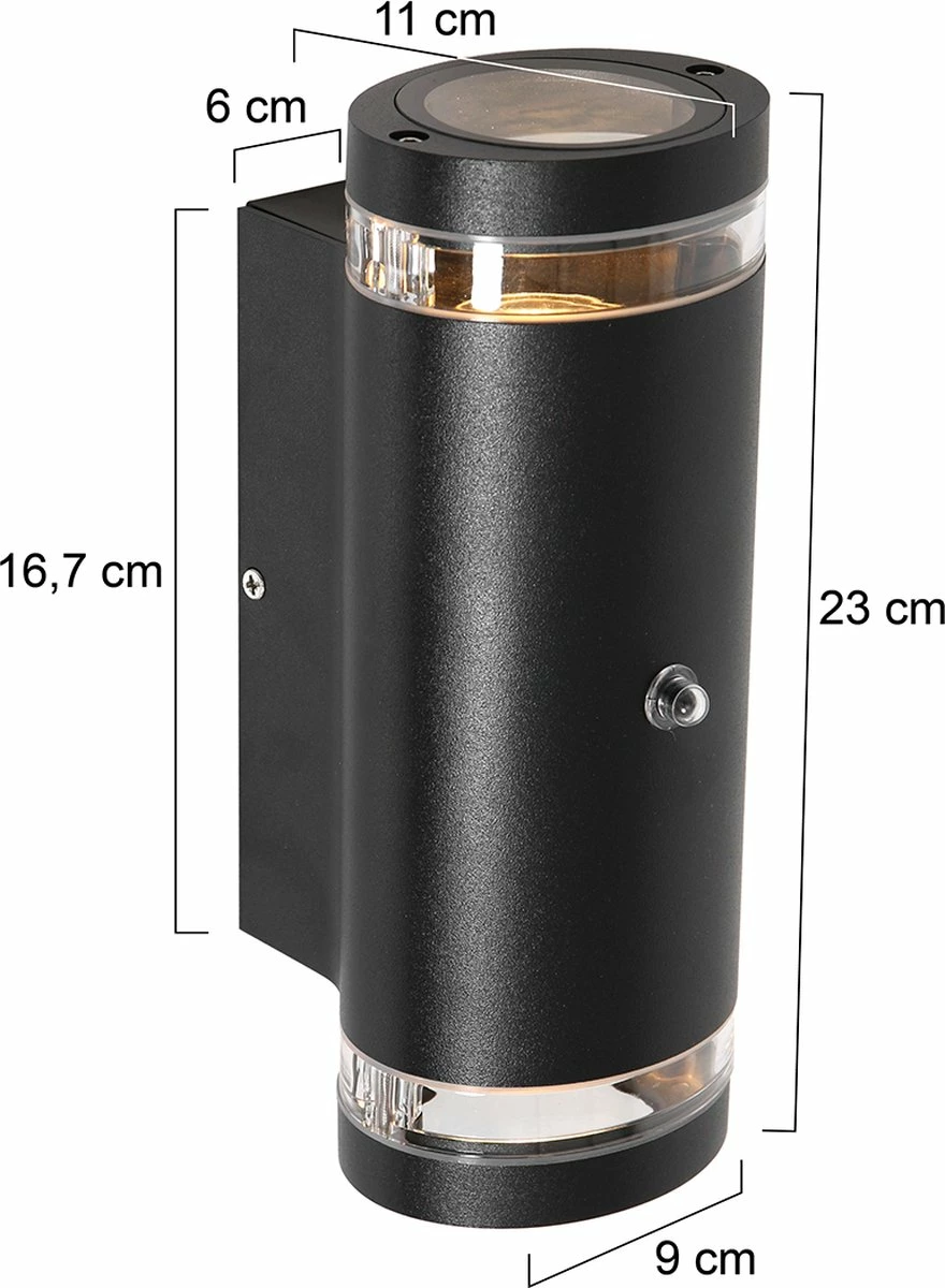 Cet article a un raccord LED avec une puissance maximale de par point lumineux. La lampe d’extérieur en verre a 2 points lumineux. Ce produit est livré avec une garantie de 2 ans. La lampe d’extérieur convient à une utilisation en extérieur. L’article a une classe de protection IP44. Cela signifie que ce produit est protégé contre les corps étrangers et les projections d’eau. La lampe d’extérieur noire donne une touche élégante, que vous pouvez clairement voir à l’extérieur.