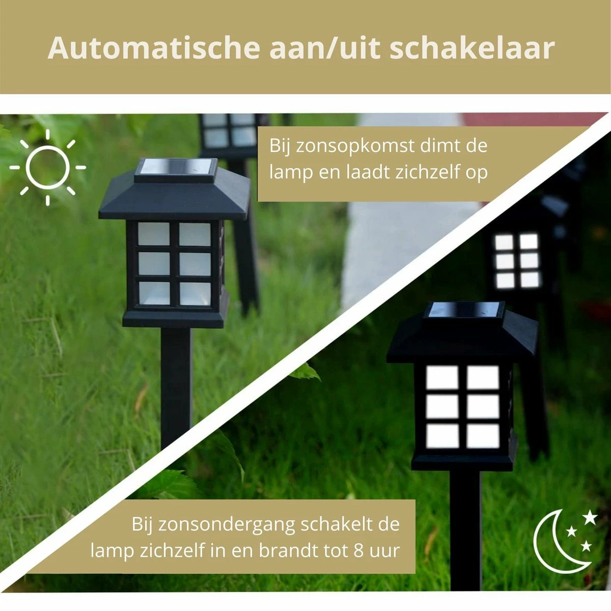 Vous êtes soucieux de l’environnement car l’éclairage fonctionne à l’énergie verte. Les lampes de jardin contiennent des lumières qui sont chargées par l’énergie solaire et qui les transforment ensuite en éclairage. Les panneaux solaires absorbent également l’énergie les jours moins ensoleillés. La batterie est ensuite chargée à la lumière du jour, et non spécifiquement à la lumière du soleil. De cette façon, l’éclairage fonctionne toute l’année.