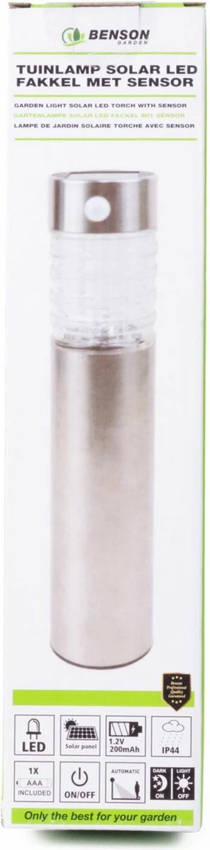 Cette lampe de jardin Solar est une lampe d’extérieur de couleur argentée qui fonctionne à l’énergie solaire. De plus, un détecteur de mouvement a été installé qui réagit à l’approche des personnes. De cette façon, vous pouvez être sûr d’avoir rapidement une lumière d’orientation disponible la nuit. La portée du capteur est de 5 mètres et l’angle de détection est de 90 degrés. Si aucun mouvement n’est détecté, la lampe de jardin s’allume avec une luminosité de base après la tombée de la nuit pour s’assurer qu’une veilleuse est toujours disponible.