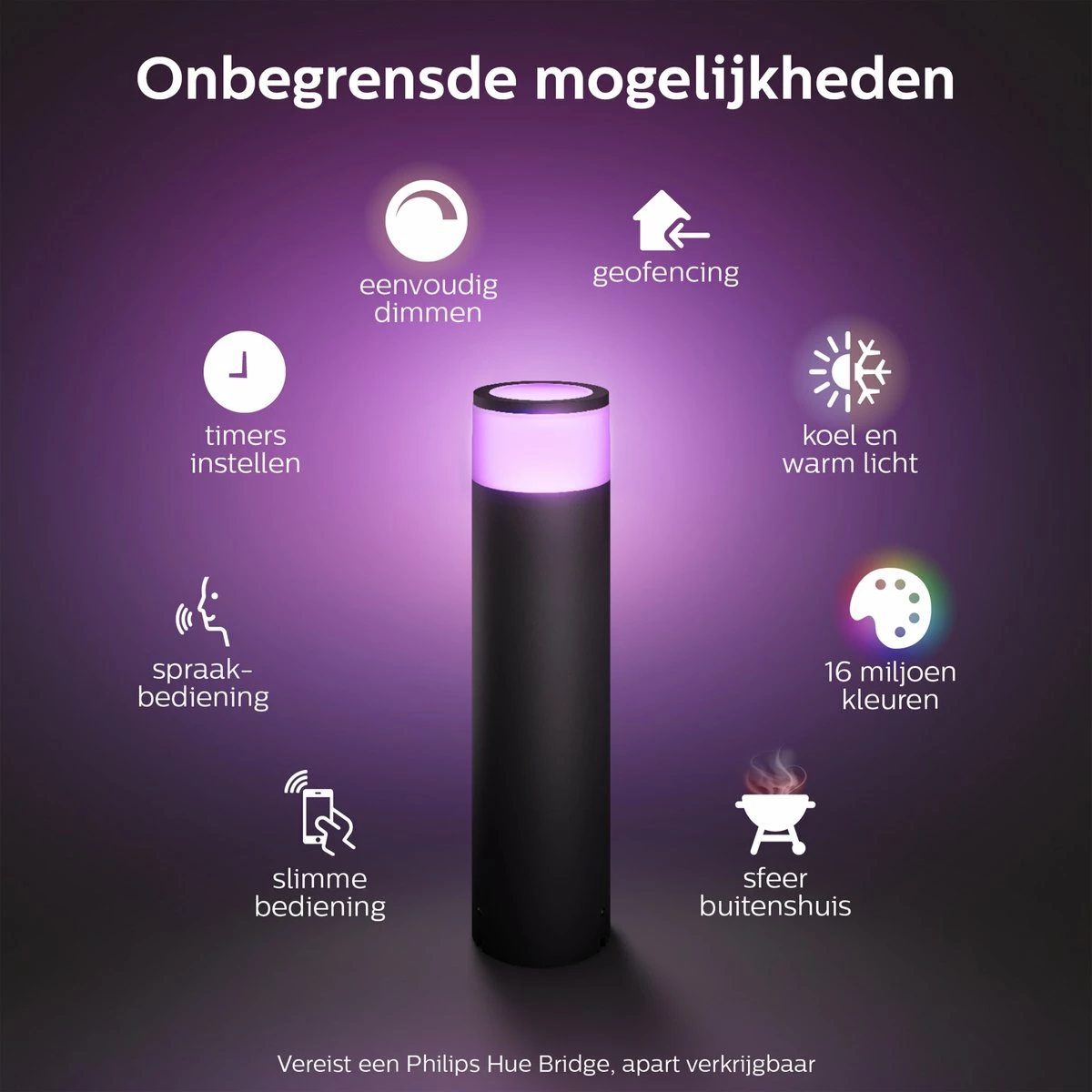 Cette puissante lampe Philips Hue convient particulièrement comme éclairage de jardin. Utilisez cette lampe Philips Hue pour éclairer les entrées de votre maison, créer plus d’ambiance et donner à votre espace extérieur un petit plus avec la bonne scène pour chaque instant.