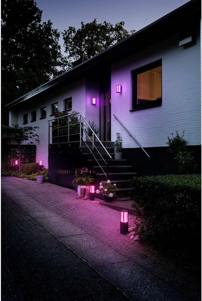 Décorez votre jardin avec les 16 millions de couleurs disponibles ou utilisez la lampe pour illuminer de manière fonctionnelle vos allées de jardin le soir et la nuit. L’extension Impress contient 1 point lumineux et peut être utilisée pour étendre votre système basse tension. Les lampes d’extérieur Hue sont complètement résistantes aux intempéries. Ensemble de base impressionnant et pont Hue requis.