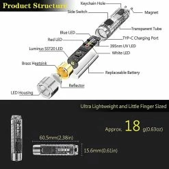 Unbranded Mini Lampe De Poche Uv Torche, 400 Lumens Rechargeable Led Lampe De Poche Torche