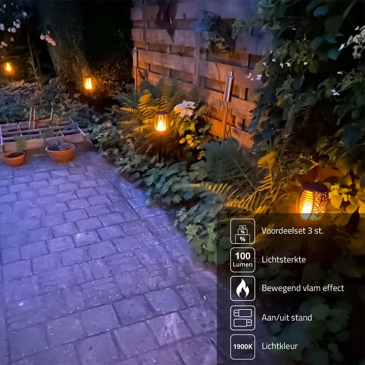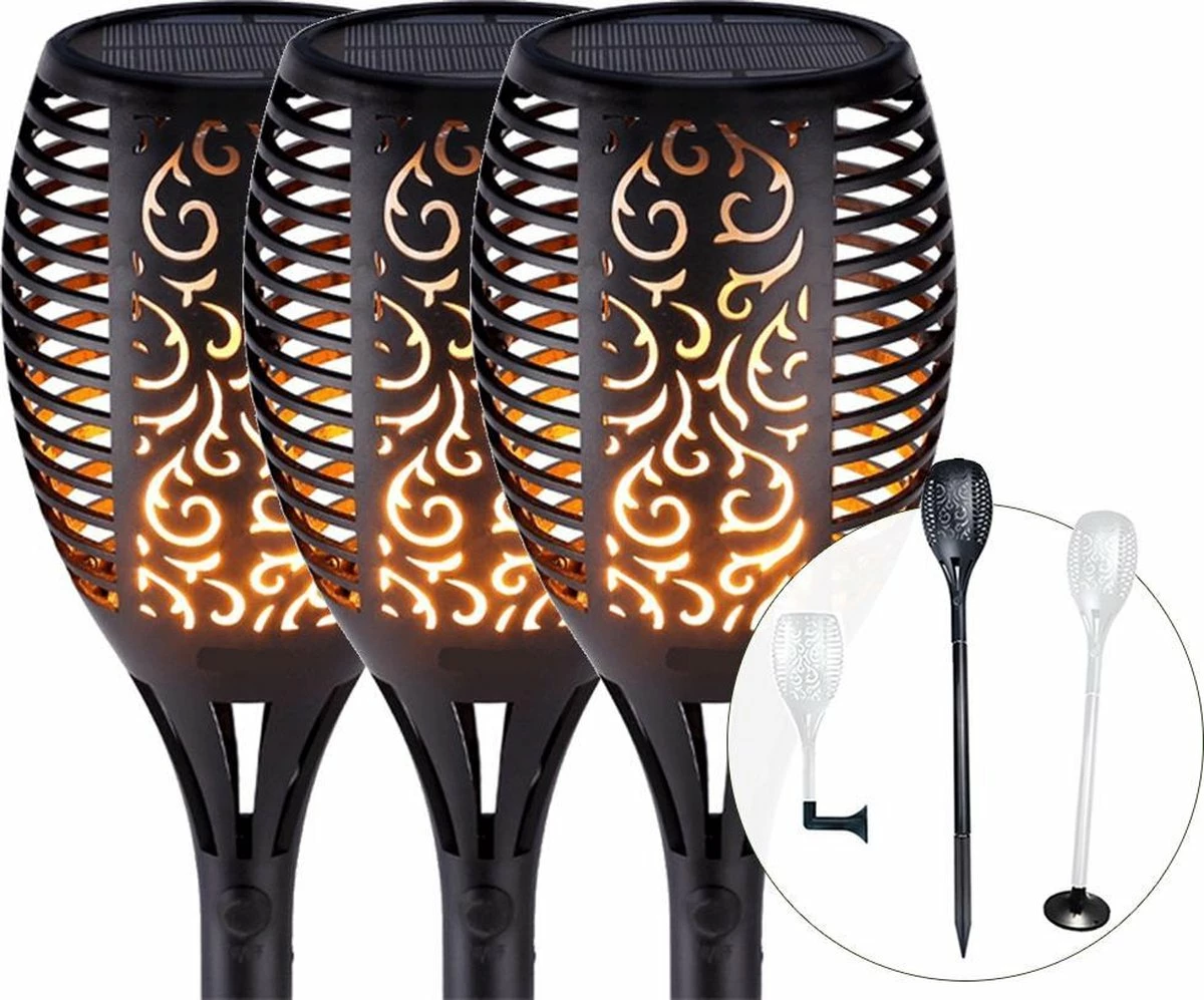 3x lampe solaire torche avec flamme en mouvement et capteur crépusculaire