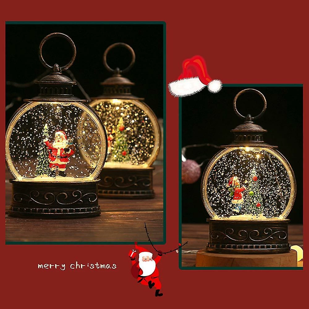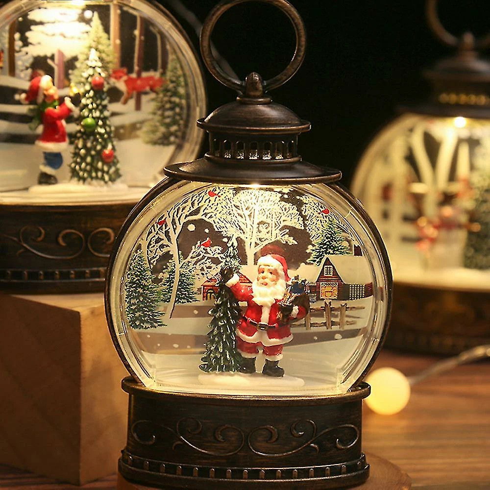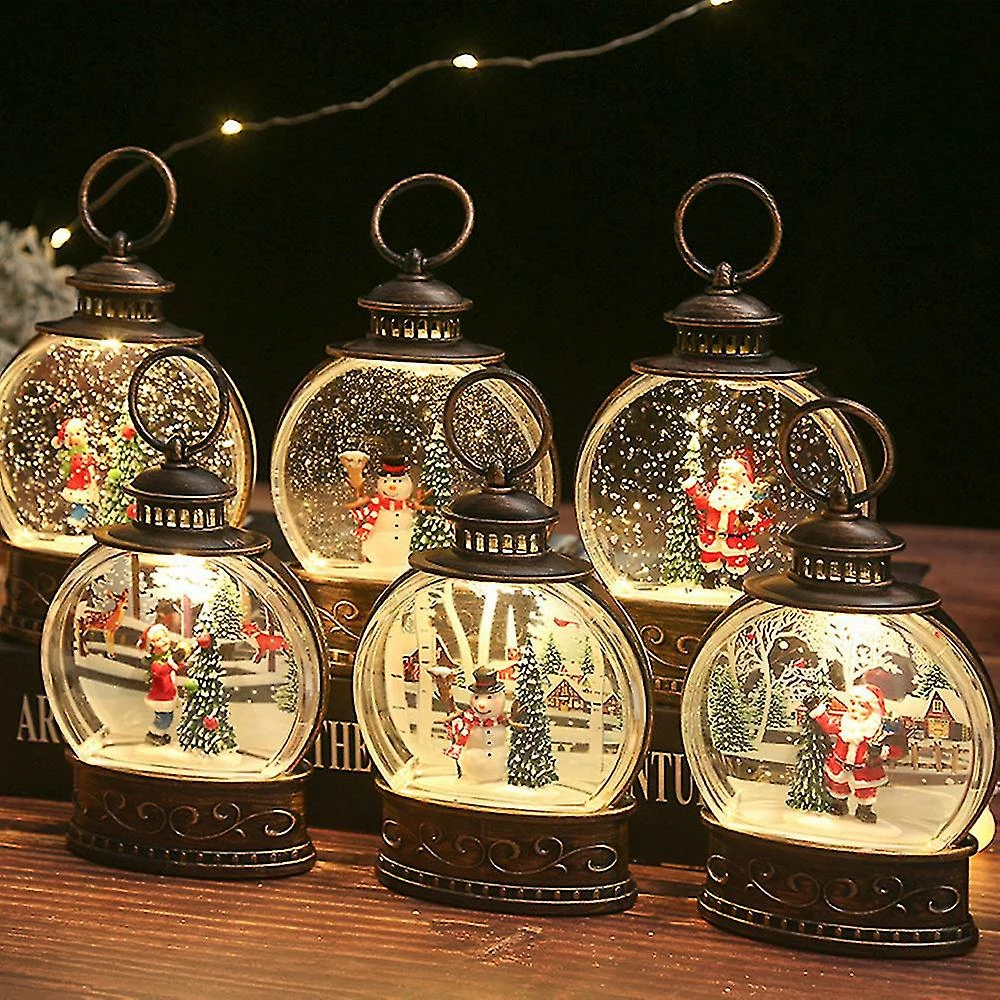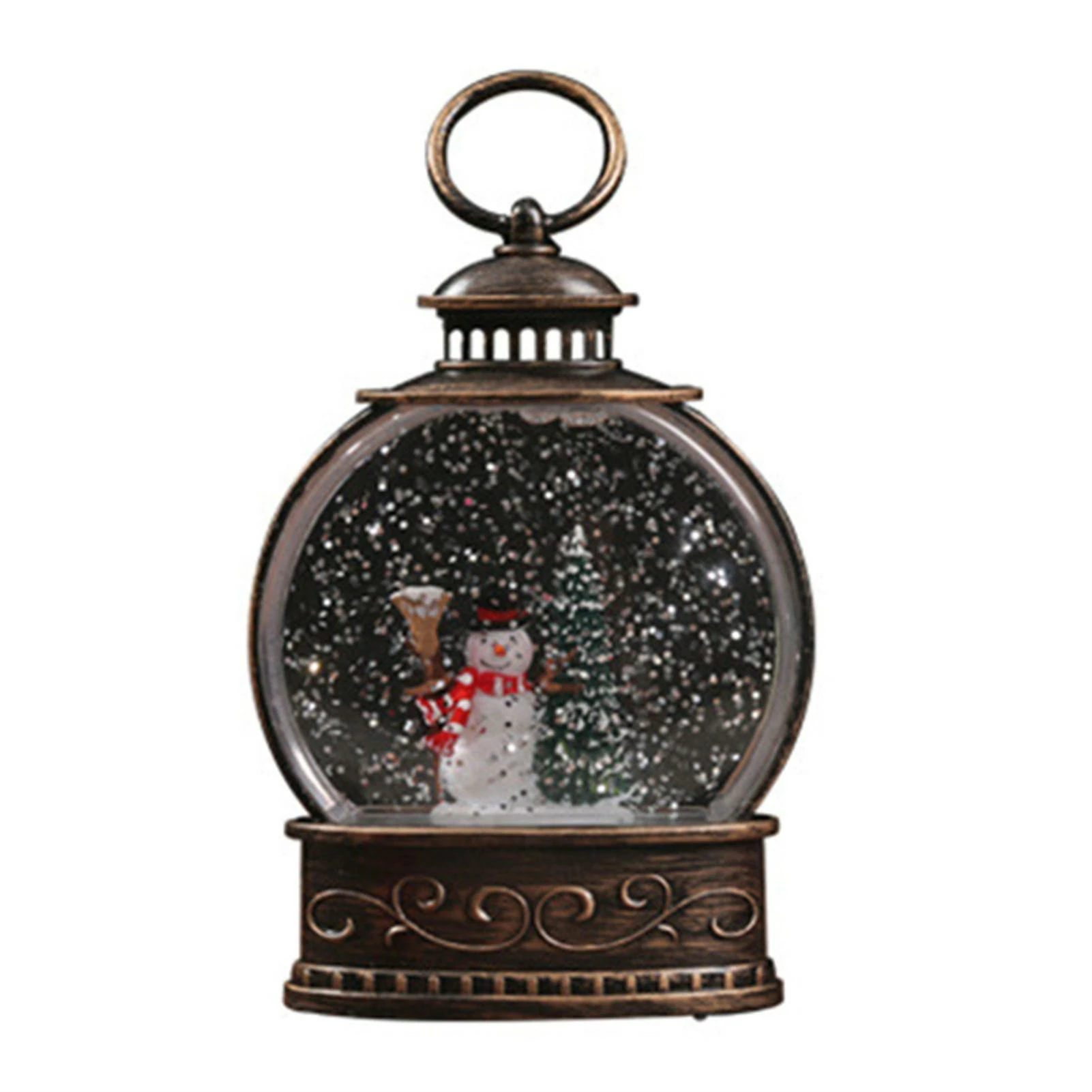 Christmas Table Decoration: With snow falling off people are celebrating Christmas happily. Warm lights inside the lamp makes every scene a beautiful story.