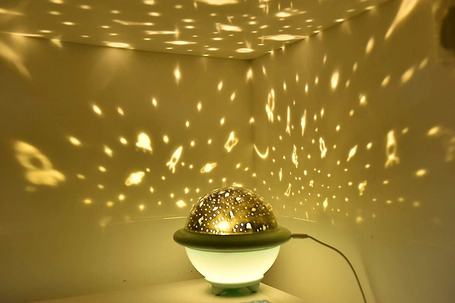 UFO Night Projector: A light projected onto a wall or as a bedside lamp, filling the bedroom with moon and stars, which is good for your baby’s peace and sweet sleep.