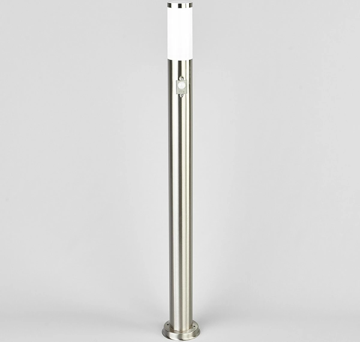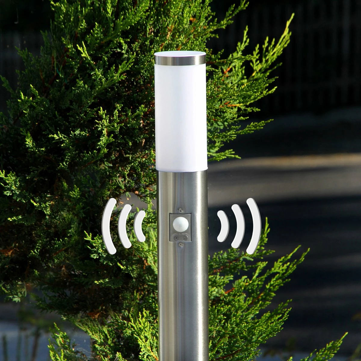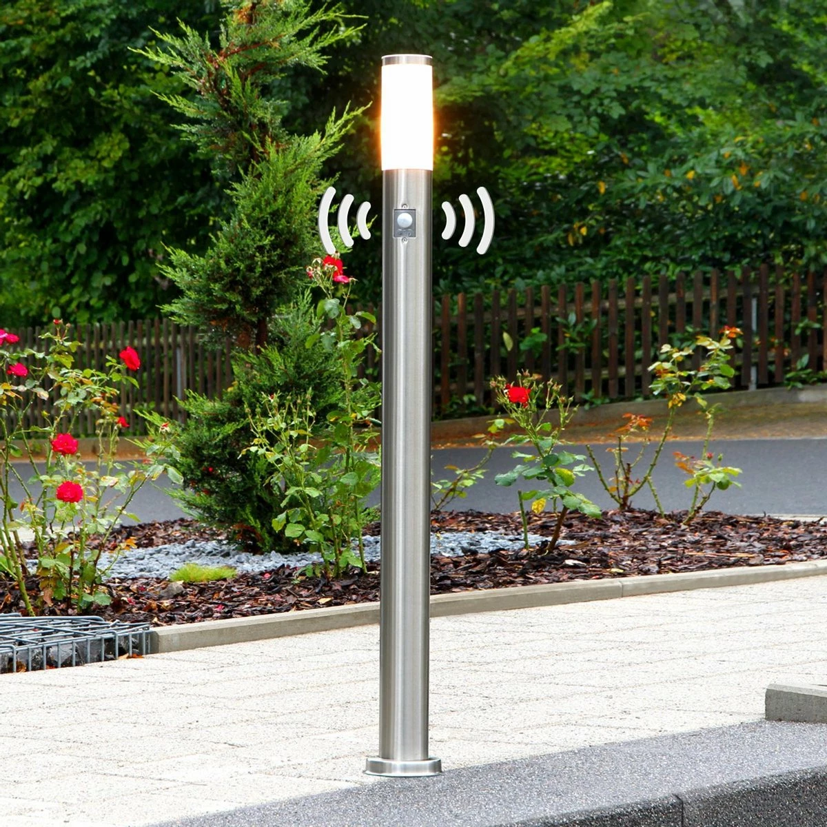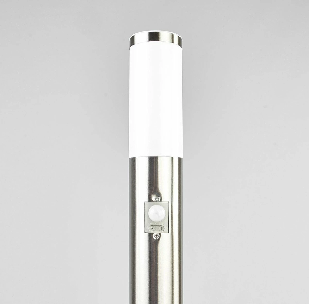 Lindby – Lampe D’extérieur Avec Capteur – 1 Lumière – Acier Inoxydable, Polycarbonate – H : 110 Cm – E27 – Acier Inoxydable, Blanc