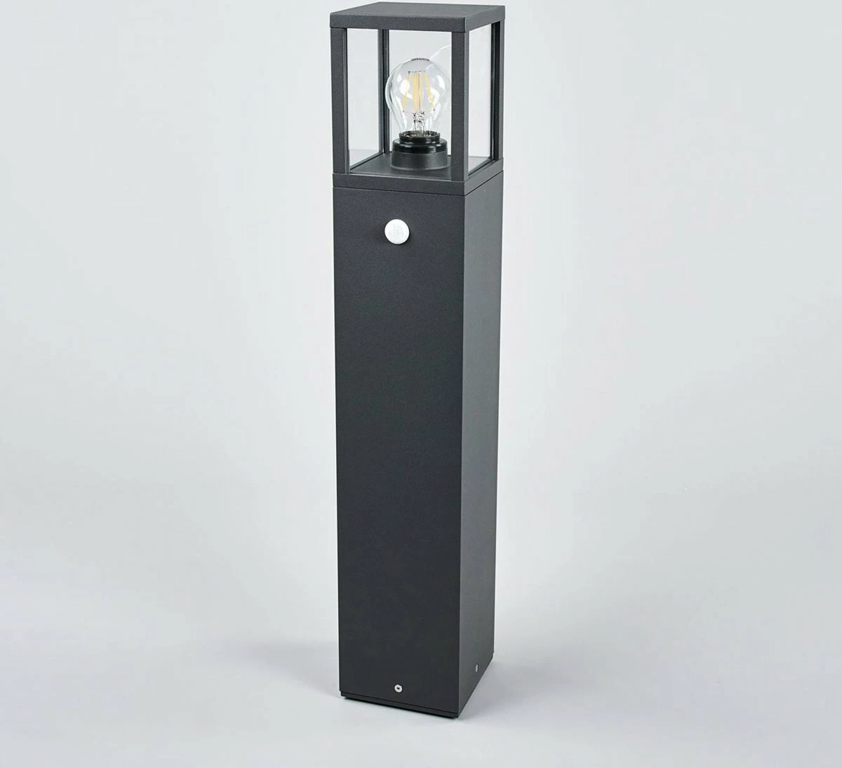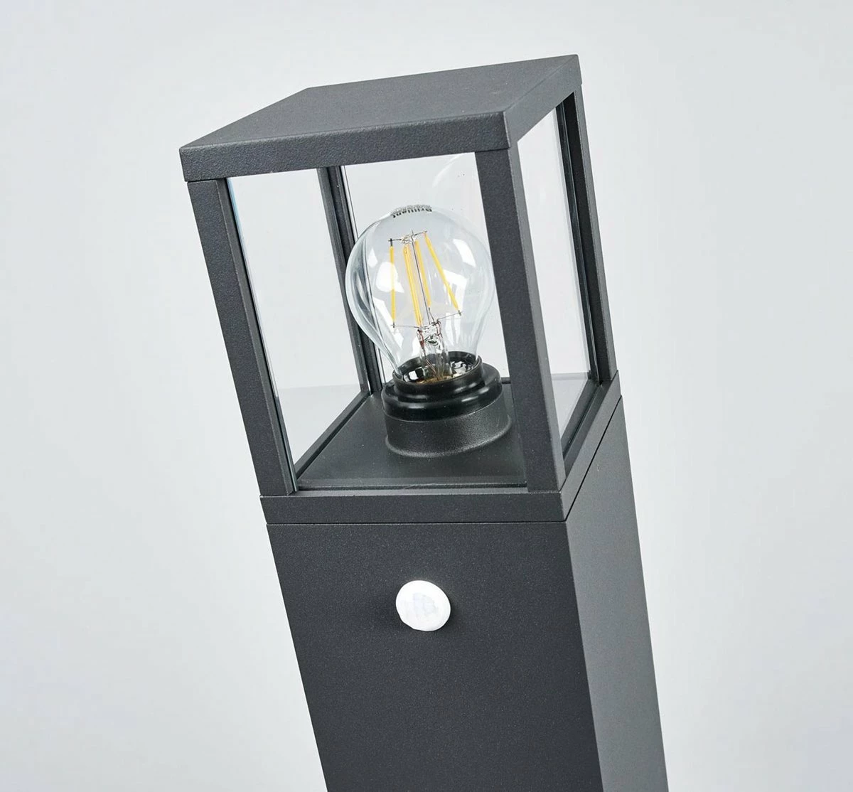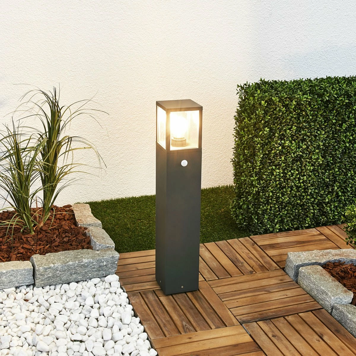Lucande – Lampe D’extérieur Avec Capteur – 1 Lumière – Aluminium Moulé Sous Pression, Verre – H : 65 Cm – E27 – Gris Graphite, Clair