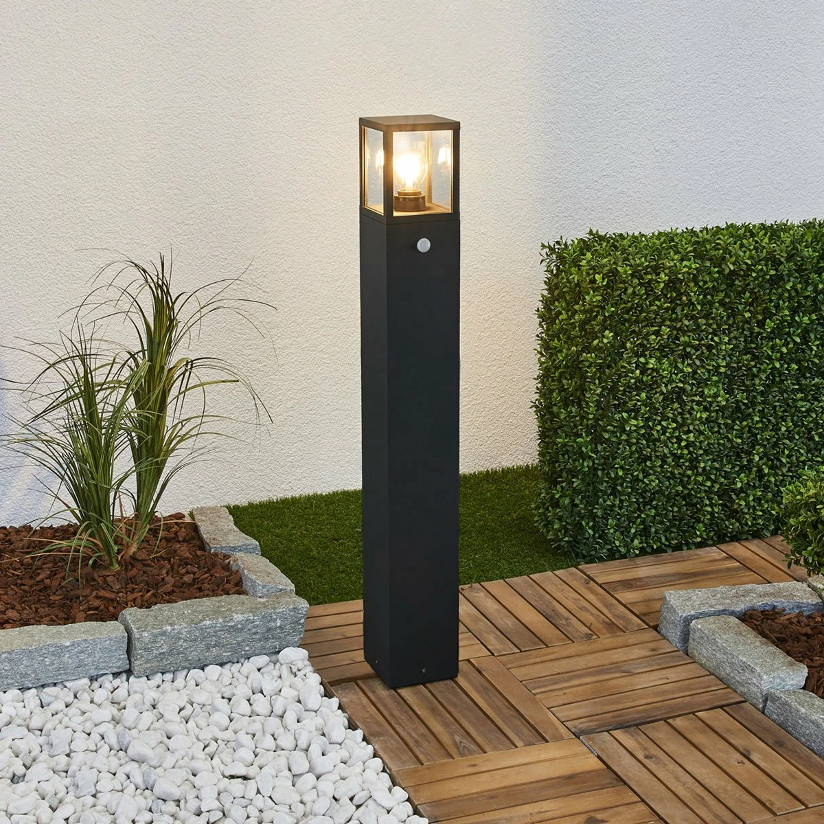 Lucande – Lampe D’extérieur Avec Capteur – 1 Lumière – Aluminium Moulé Sous Pression, Verre – H : 90 Cm – E27 – Gris Graphite, Transparent