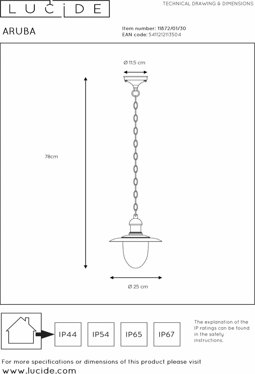 • Consommation: 1x60W / 230V / A ++ – E (excl.) – Dimmable