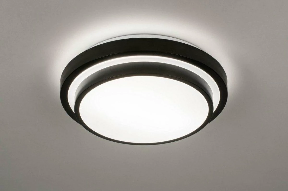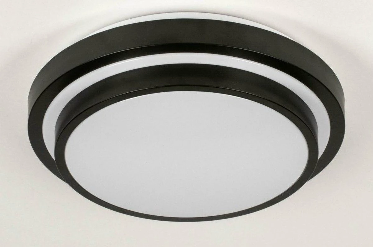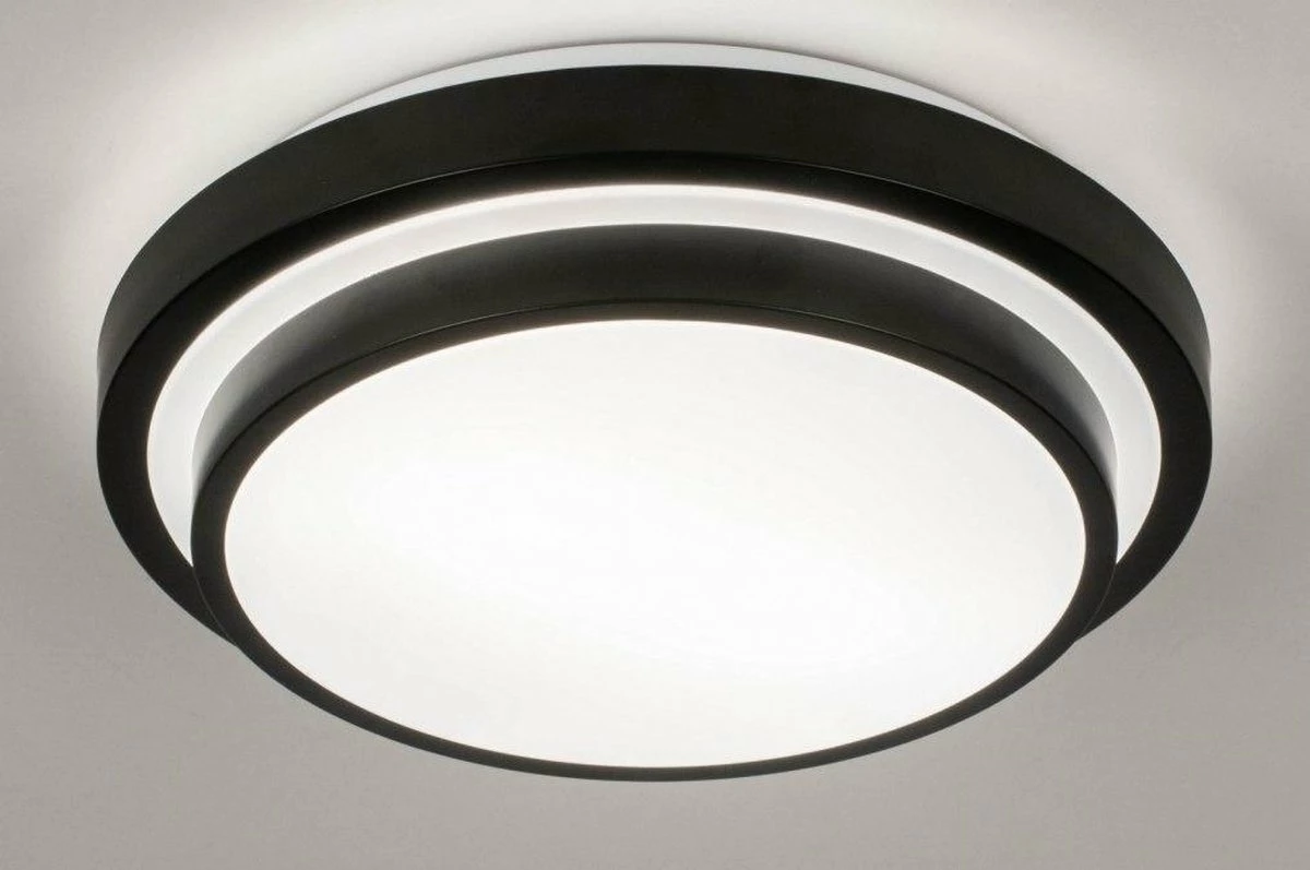 Lumidora Plafonnier 73677-2 Lumières – E27 – Zwart – Wit – Plastique – Lampe De Salle De Bains – IP44 – ⌀ 34 Cm