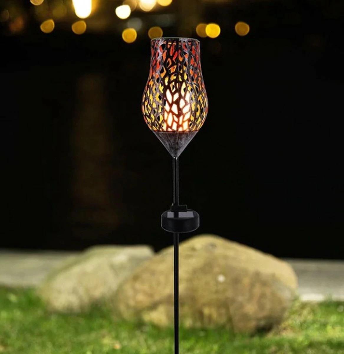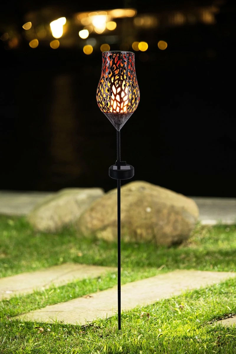 La lampe solaire Rose est facile à installer et n’a pas de cordon. Vous insérez simplement la Rose dans le sol, la pelouse ou la jardinière et le soleil fait le reste.