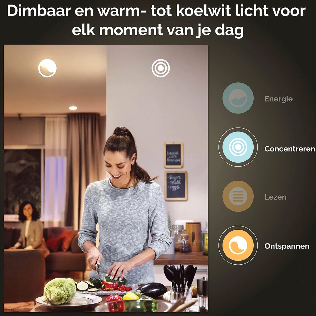 Avec la fonction Bluetooth et l’application qui l’accompagne, vous pouvez contrôler jusqu’à 10 lampes et régler toutes les lampes sur une lumière plus vive, une lumière tamisée ou l’une des recettes lumineuses préprogrammées en un rien de temps.
