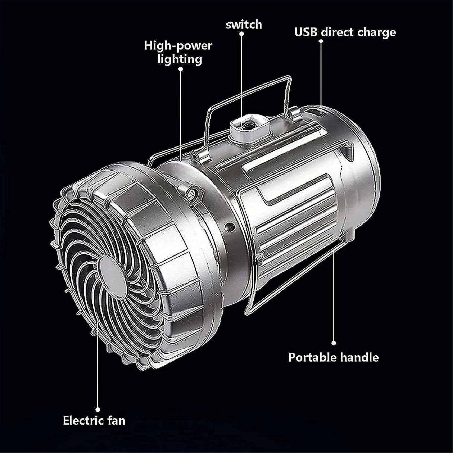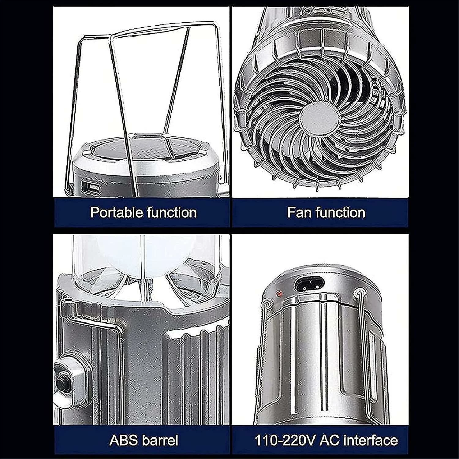 Mssugar Lanterne De Camping Solaire 6 En 1 Avec Ventilateur Led Hiking Light Lampe De Pêche En Plein Air Portable