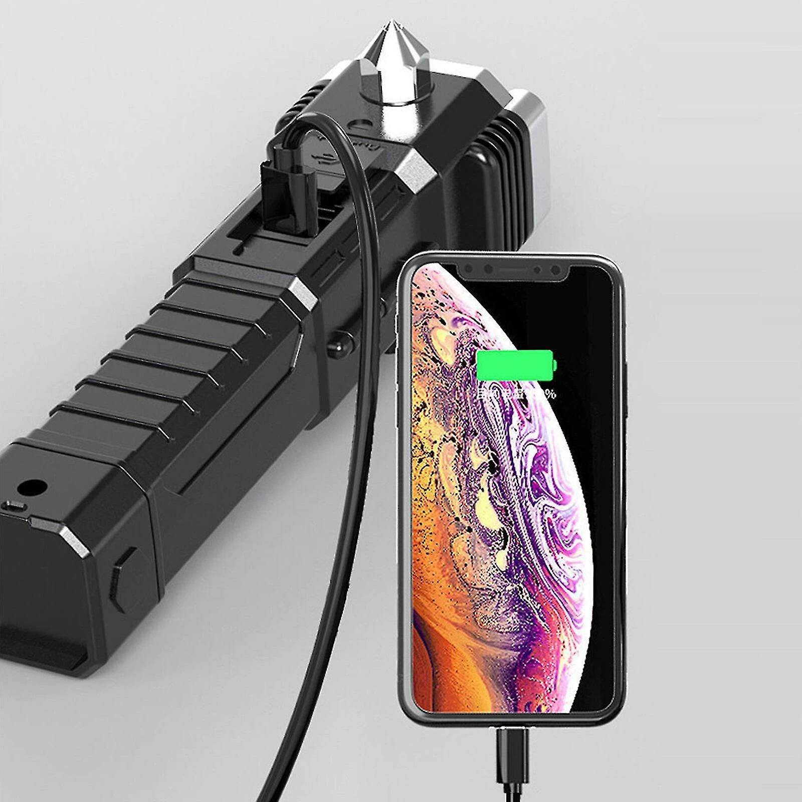 LED Flashlight Torch Car Safety Hammer USB Camping Light Lantern Auto Escape Emergency Broken Window Hammer Outdoor Lighting