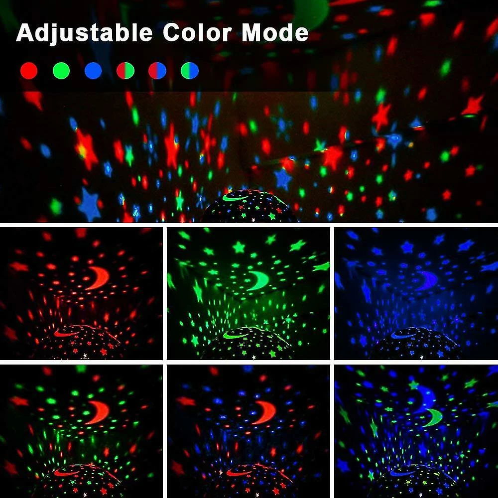 360Rotation & 8 Different Colors Mode Warm white and red / blue / green LED project 8 colors light, nice different patterns make your kids feel like staying in the middle of starry sky or an real ocean.The projector lamp could be 360rotation, rotate dynamic can offer an amazing vivid vision, fully arousing your kids’ interests to learn more about the world and creatures.