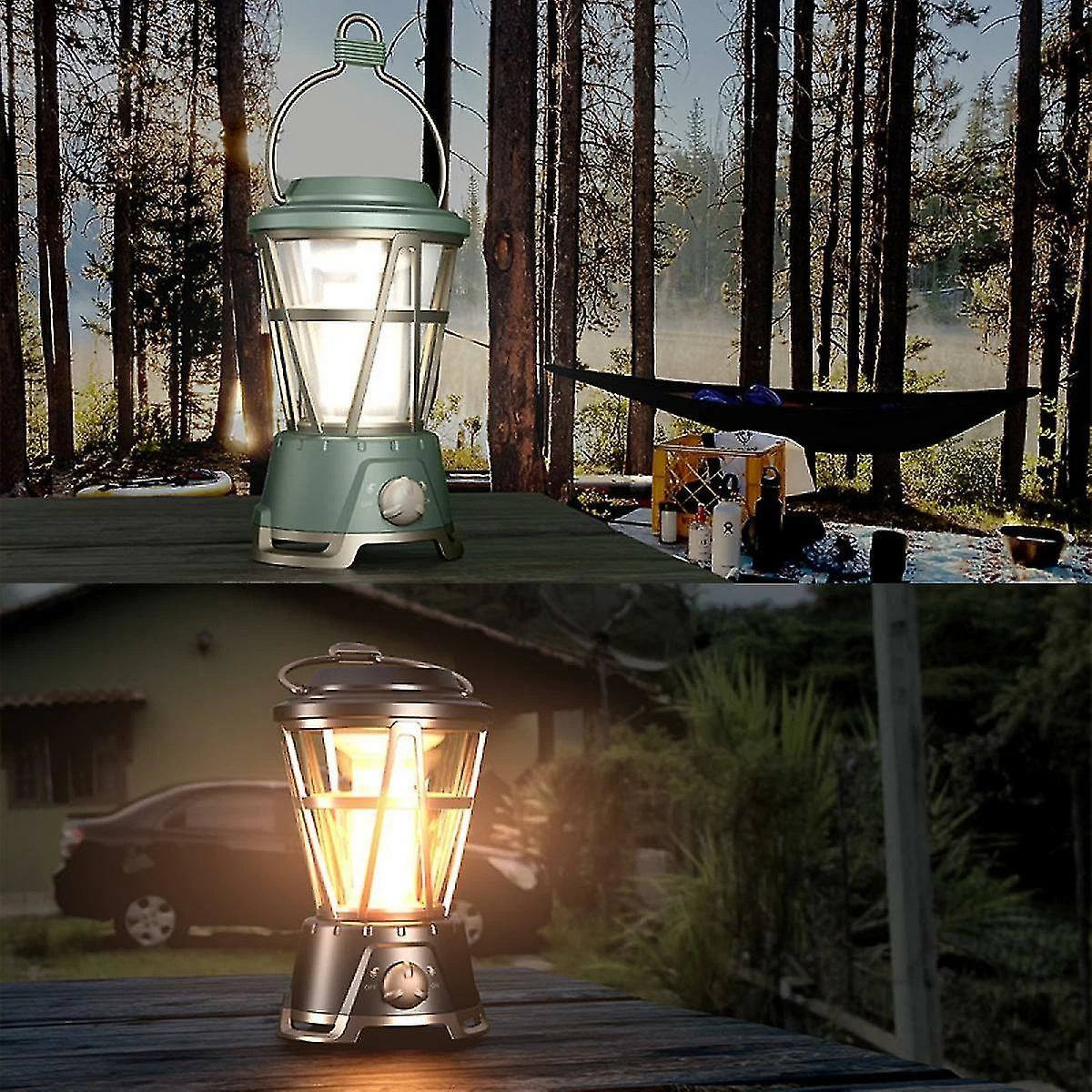 Two Charging MethodsBuilt-in 2400mAh Li-ion rechargeable battery, the upgrade led lantern with two charging methods: Solar charging, and USB charger. Automatic power-off protection, Don’t worry about overcharging.