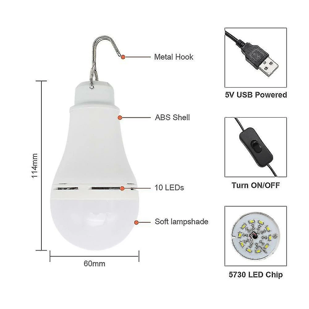 Otwoo Lumière Portable D’ampoule Led D’USB Avec Le Bouton D’interrupteur – Lampe De Nuit D’urgence à La Maison
