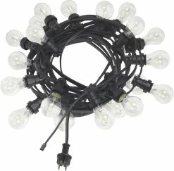 Un tuyau d’éclairage élégant avec 20 raccords E27, dont 20 sources lumineuses claires. Le tuyau de lumière mesure 12 mètres de long et 2,5 mètres jusqu’au premier support de lampe, puis il y a 0 mètre entre les deux. Le tuyau d’éclairage est en caoutchouc pour une utilisation en extérieur, IP44 mais peut également être utilisé en intérieur. Les sources lumineuses sont interchangeables, vous pouvez donc changer leur apparence avec des moyens simples. La longueur totale est de 12,2 m.