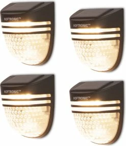 HOFTRONIC – 4x Lampe D’extérieur Solar – Convient Pour Clôture, Façade Et Allée – Avec Interrupteur Crépusculaire – étanche IP65 – 3000K Blanc Chaud – Éclairage De Jardin à L’énergie Solaire