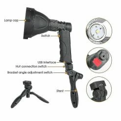 Unbranded Led Hand Held Spotlight Usb Rechargeable Camping Hunting Lampe De Poche Torche Lampe