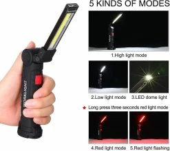 Luluzhu Led Work Light Torch Torche Inspection Lights Lampe De Camping Rechargeable Avec Base Magnétique, Indicateur De Puissance, Crochet, Pliable Et Dimmable Compatible Avec