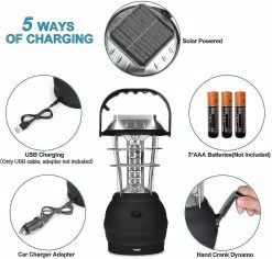 Luluzhu Lanternes De Camping Led Lampe Solaire Manivelle à Main Dynamo Imperméable Portable Lumière D’Urgence Noir