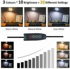 Unbranded Lampe De Bureau à Pince USB, 3 Couleurs Et 10 Luminosité Réglables